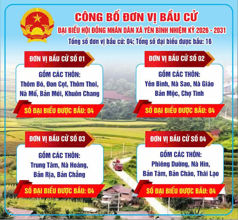 CÔNG BỐ ĐƠN VỊ BẦU CỬ ĐẠI BIỂU HĐND XÃ YÊN BÌNH – NHIỆM KỲ 2026 – 2031